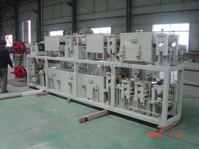 我公司生產(chǎn)的塑王牌不銹鋼酸洗鈍化線(全浸式)已廣泛應(yīng)用于廣東(佛山)、江蘇、浙江、山東、湖北、河北等地,受到眾多客戶的一致好評。生產(chǎn)線由主體三個部分和若干配套設(shè)備組成: 酸洗(鈍化槽)、清洗槽、烘干箱,配套設(shè)備包括儲酸罐、配酸槽、酸霧處理系統(tǒng)、廢水處理系統(tǒng)等。其中酸洗、清洗槽底采用整板折彎,保證了槽體底部直角無焊縫,盡可能防止了泄露的可能;清洗槽采用五組毛刷清洗,其中后兩組為擠干刷,使不銹鋼板在進入烘箱前板面上只有細秘的水線而無大粒水珠,保證了板材烘干后表面無花斑、色差;完善的售后服務(wù)體系也是您連續(xù)生產(chǎn)的很好保障
